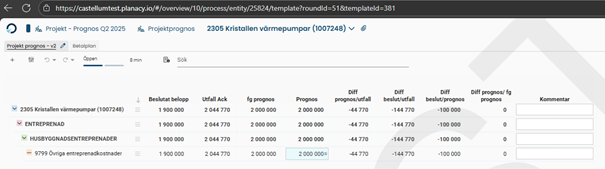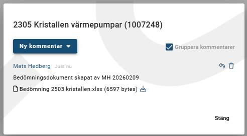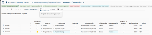 2. Bifoga bedömningsdokument per projekt så att alla berörda parter vet var dokumentation finns och att det i samband med den även finns en uppdaterad projektprognos.